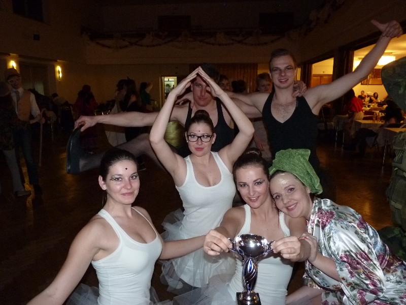 Po celý večer nám krásně hráli a zpívali k poslechu i tanci „mniši", tedy v civilu hudební kapela PS Band ze Skřinářova. Opět i letos nezávislá porota tajně sledovala po celý večer krásné masky a o půlnoci jsme tak mohli ocenit tři nejlepší. Třetí místo obsadili „Travesťáci", druhé místo „Baletky s baleťáky" a první místo získala dvojice „Sateliťáků". Všichni ocenění dostali pohár, diplom a láhev vína z Valtického vinařství. Součástí maškarního bálu byla bohatá a vtipná tombola.