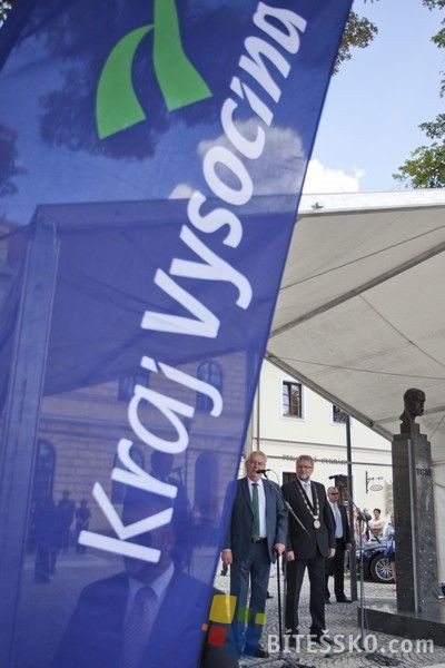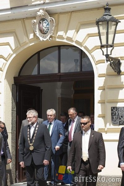 Druhou zastávkou prezidenta a hejtmana ve městě byla bítešská radnice. Před ní byli oba dva hosté
