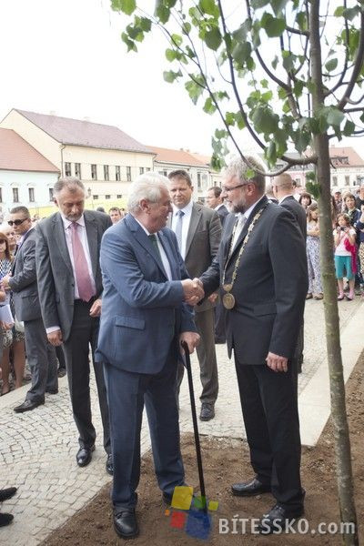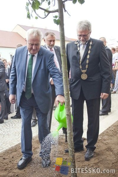 Společné zasazení prezidentské lípy u východní kašny na náměstí panem prezidentem, hejtmanem a starostou završilo návštěvu Velké Bíteše krátce po jedné hodině.