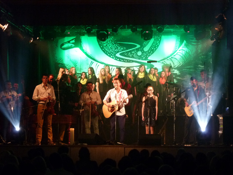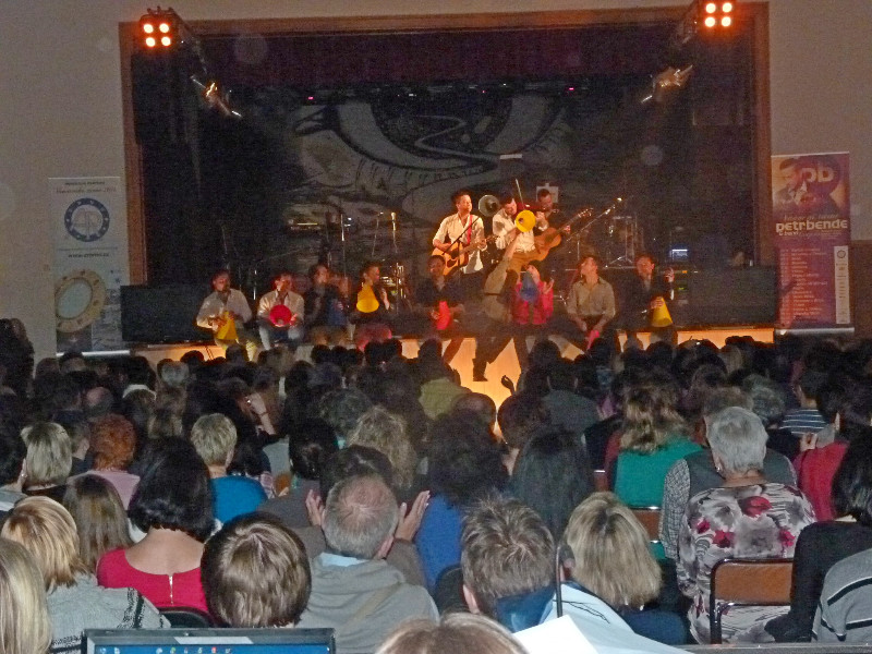 Celým večerem vládla skvělá nálada, publikum zpívalo, tleskalo. Zazněly známé Petrovy písničky, ale také vánoční koledy jím upravené, jako např. Půjdem spolu do Betléma, Rolničky, Nesem vám noviny. Zazněla i nová píseň z letošního roku „Naše cesta". Při „čardáši" si Petr vyměnil místo s Martinem Zlomkem u cimbálu a přítomným předvedl své umění. Martin Zlomek pak hru na kytaru.