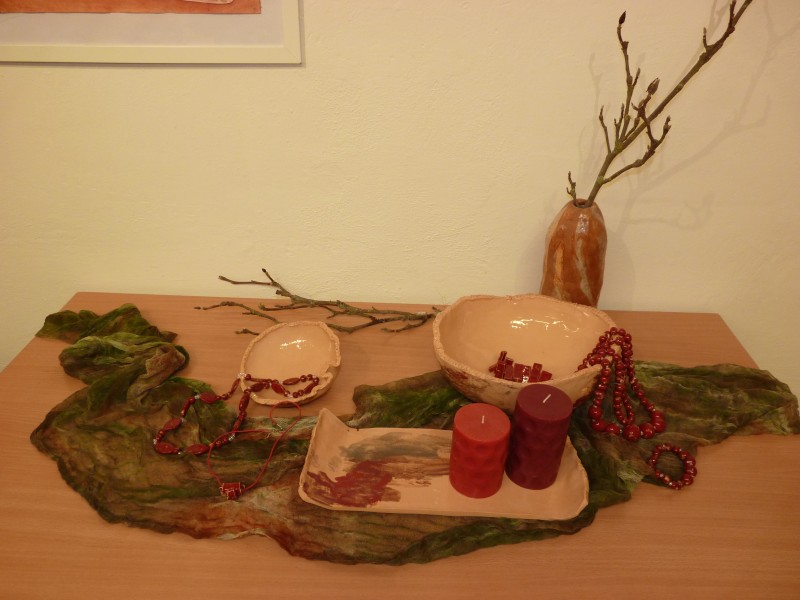 Touto akcí byla završena celoroční spolupráce Domova bez zámku se Základní školou ve Velké Bíteši, Tišnovská 116. Společně s pedagogy, paní ředitelkou, dětmi a našimi uživateli jsme se potkávali, tvořili a vyměňovali si zkušenosti. Při posledním setkání na zahradě školy vznikla i plátna, která byla na výstavě k vidění. Každý návštěvník si mohl najít něco svého, co ho dokázalo zaujmout. Ať už to byly obrazy, některé z nich malované pigmenty získanými z hlíny, příležitost postavit si sochu podle vlastní fantazie, nebo se potěšit originálními šperky.