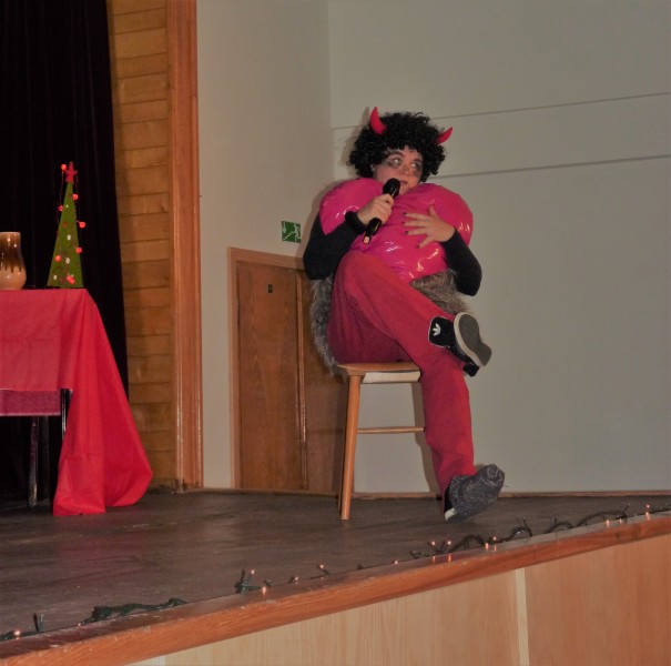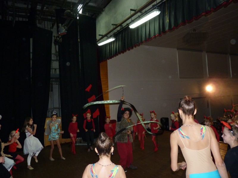 Pořadem provázel čertík Knoflík (trenérka oddílu MG Michael Křenková) a čertice Veruna (Veronika Křenková). Gymnastky se proměnily v čertíky, anděly, čarodějnice, mochomůrky a další postavy. Z lenošného čertíka Knoflíka se nakonec stal „sportovec", kterému se cvičení zalíbilo. Na konci pořadu byla předána malá pozornost jako poděkování trenérkám. Zvláštní poděkování patří trenérce Míše, která měla celou režii představení ve svých rukou. Při odchodu z kulturního domu čertík Knoflík a čertice Veruna předali všem dětem malou sladkou pozornost.