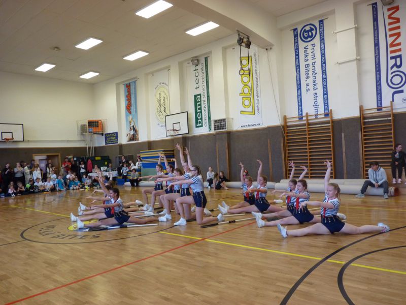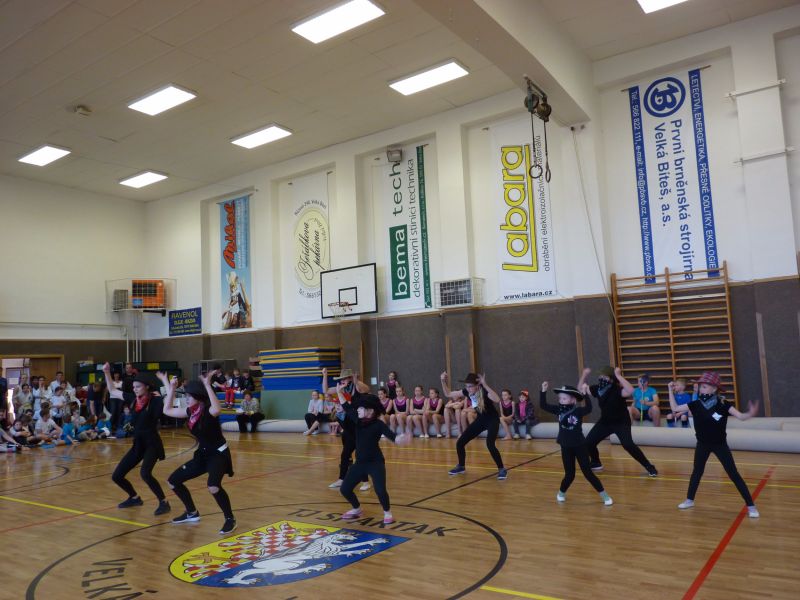 Jako první vystoupily mažoretky „Pusinky" z Říčan u Brna. „Pusinky" působí v Říčanech již 11 let a mají aktivně 3 cvičící skupiny, Pusinky 1, pusinky 3 a mini pusinky. Představila se nám tu prostřední skupina Pusinky 3, které fungují již 6 let. Na kontě mají nespočet ocenění např. z loňského roku titul I. vícemistrů oblasti a několik zlatých, stříbrných a bronzových medailí z pohárových soutěží. Děti z mateřské školy U Stadionu rádi tancují a předvedly nám tanec s názvem „La ola olé, la ola ola". S ukázkou zumby přijela děvčata z tanečně – sportovního kroužku ze Křoví. Malé „zumbakámošky" ve věku 6 – 9 let zatančily na hit Enrique Iglesia z roku 2016 „Duele el corazon".