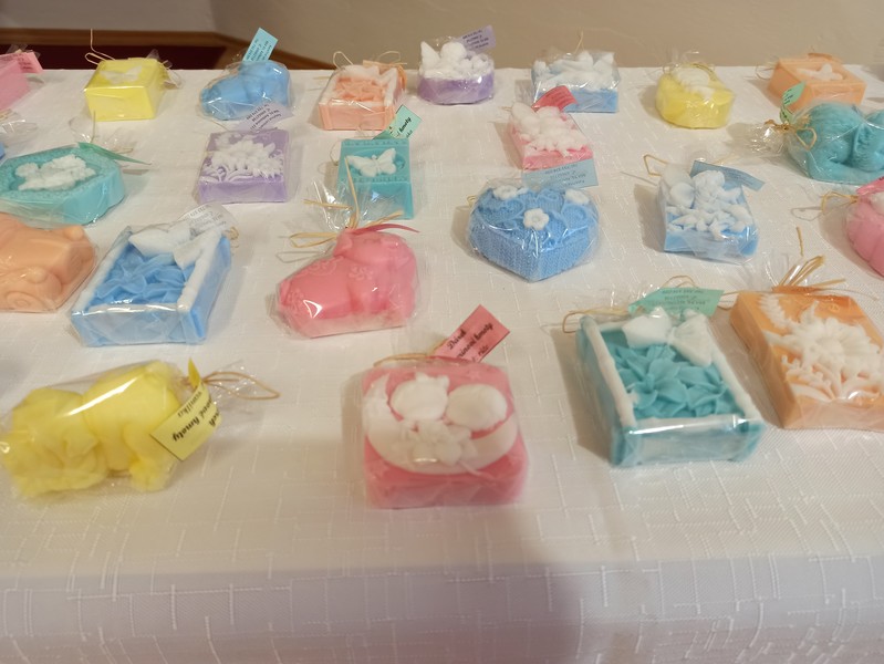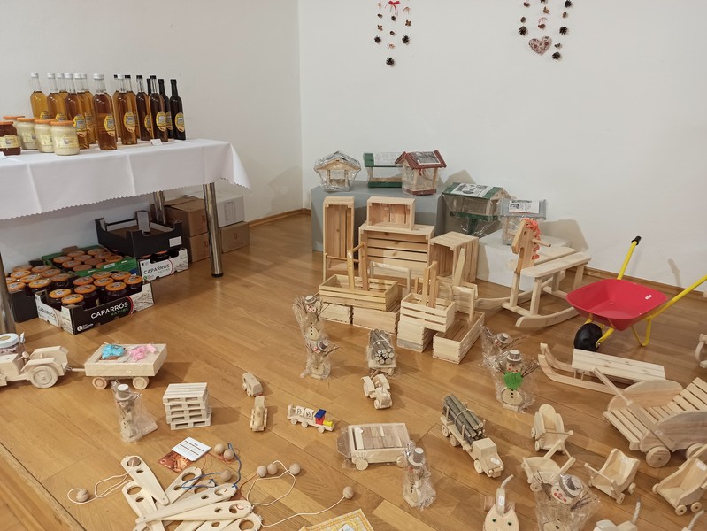 K zakoupení výrobky klientů Domova bez zámku, patchwork, med a medovina od včelařů, malované sklo, pletené košíky, dřevěné hračky a mnoho dalších drobností.