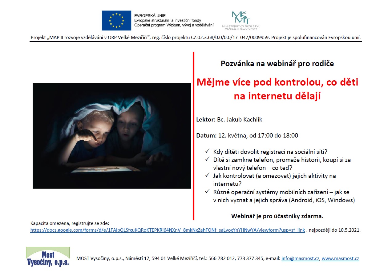 Kapacita omezena, registrujte se zde: https://docs.google.com/forms/d/e/1FAIpQLSfxuKQRoKTEPKRi64NXnV_8mkNxZahFONf_saLvoxYnYHNwYA/viewform?usp=sf_link, nejpozději do 10.5.2021.
