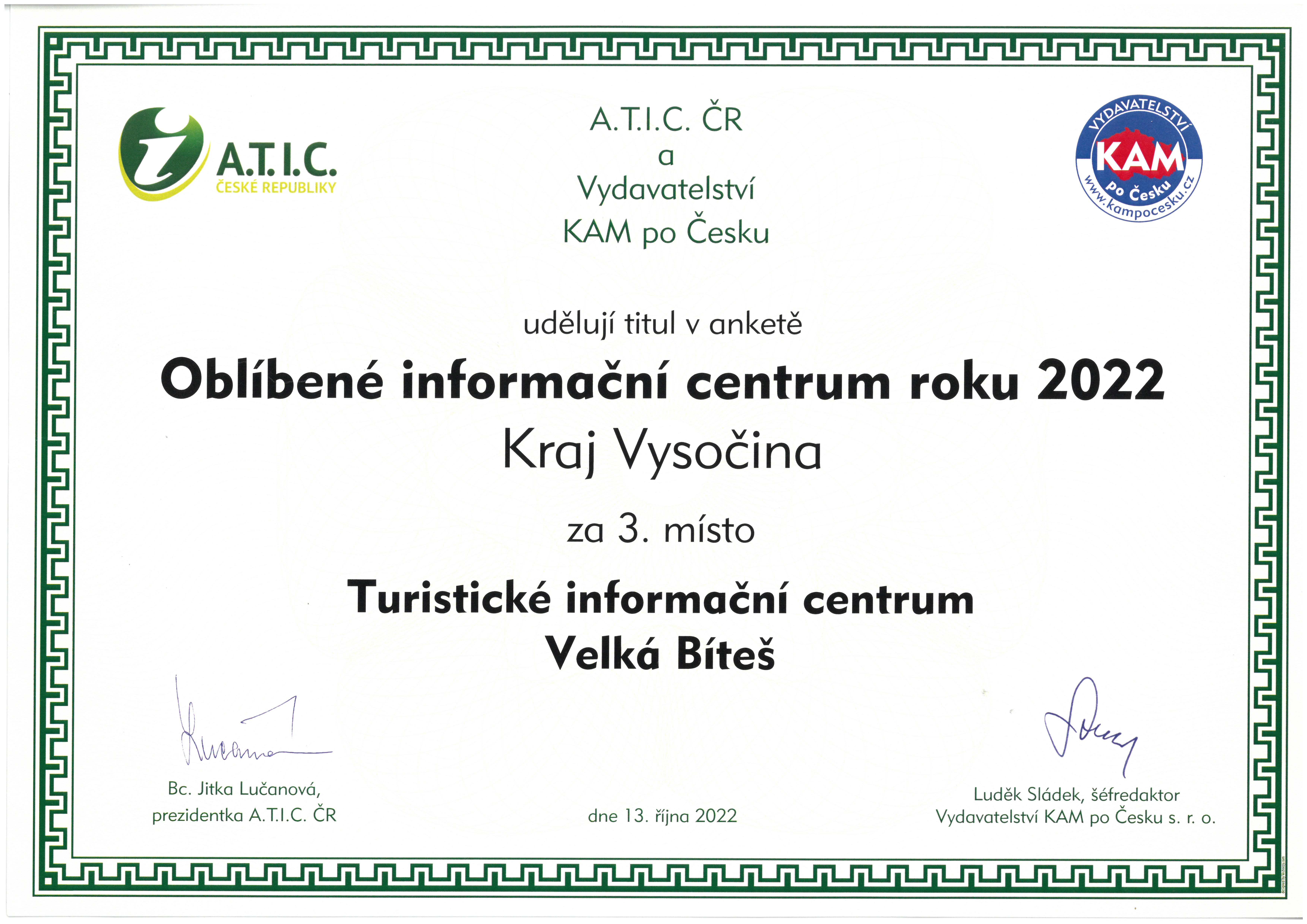 Soutěž o nejoblíbenější informační centrum vyhlašovala Asociace turistických informačních center ČR a probíhalo v době od 21. 6. - 31. 8. 2022 elektronicky na turistickém portálu www.kampocesku.cz.