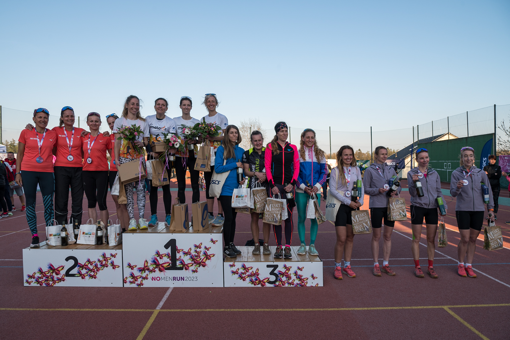 Letošním těžkým podmínkám s podmáčeným a bahnitým terénem nejlépe čelil tým Meteor běhny, který pokořil tradiční vítězky a závod dokončil v čase 7:18:02. NoMen Run je jediná čistě ženská štafeta, kterou je možné v České republice běžet.