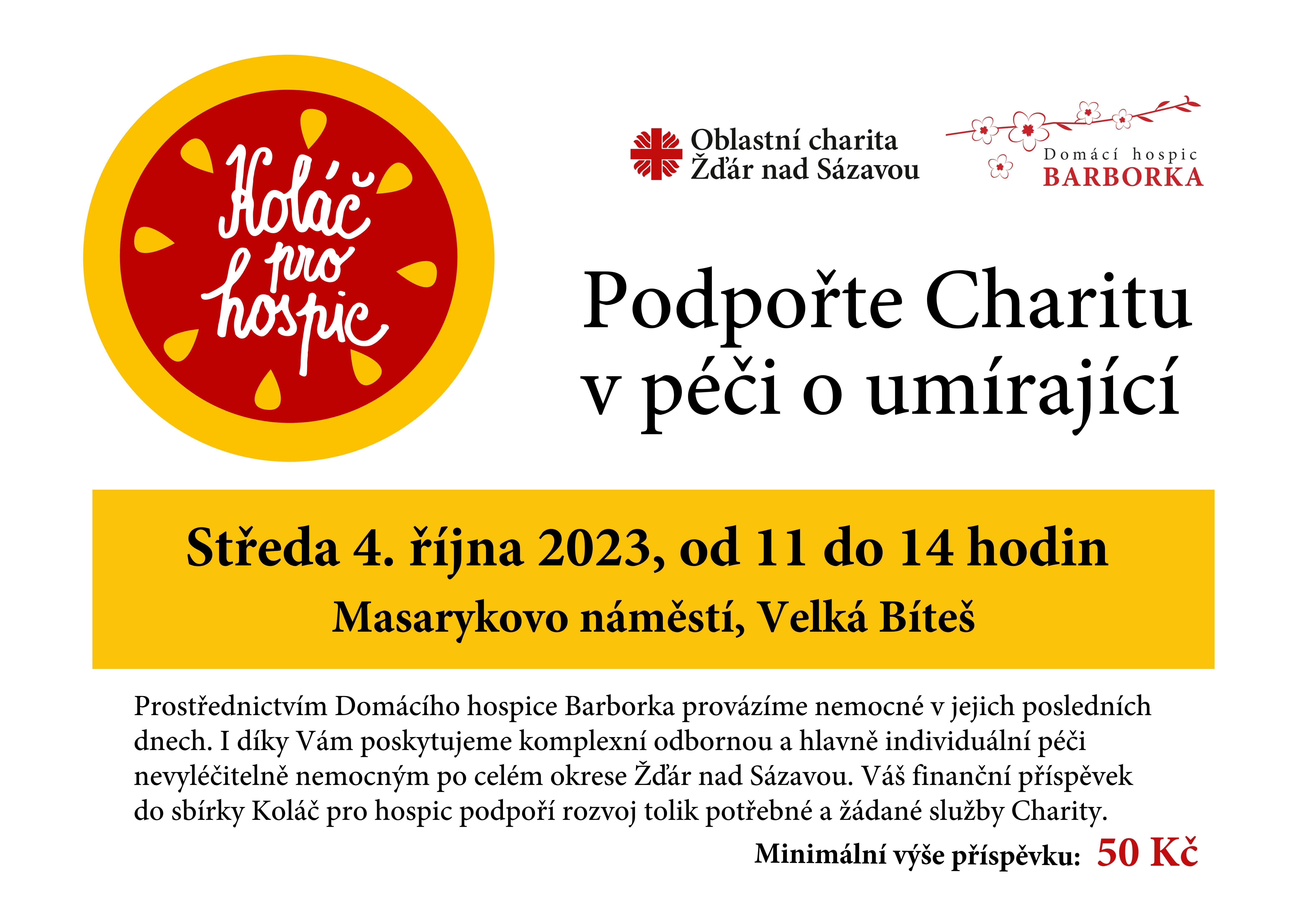 Sbírka Koláč pro hospic, středa 4. října 2023