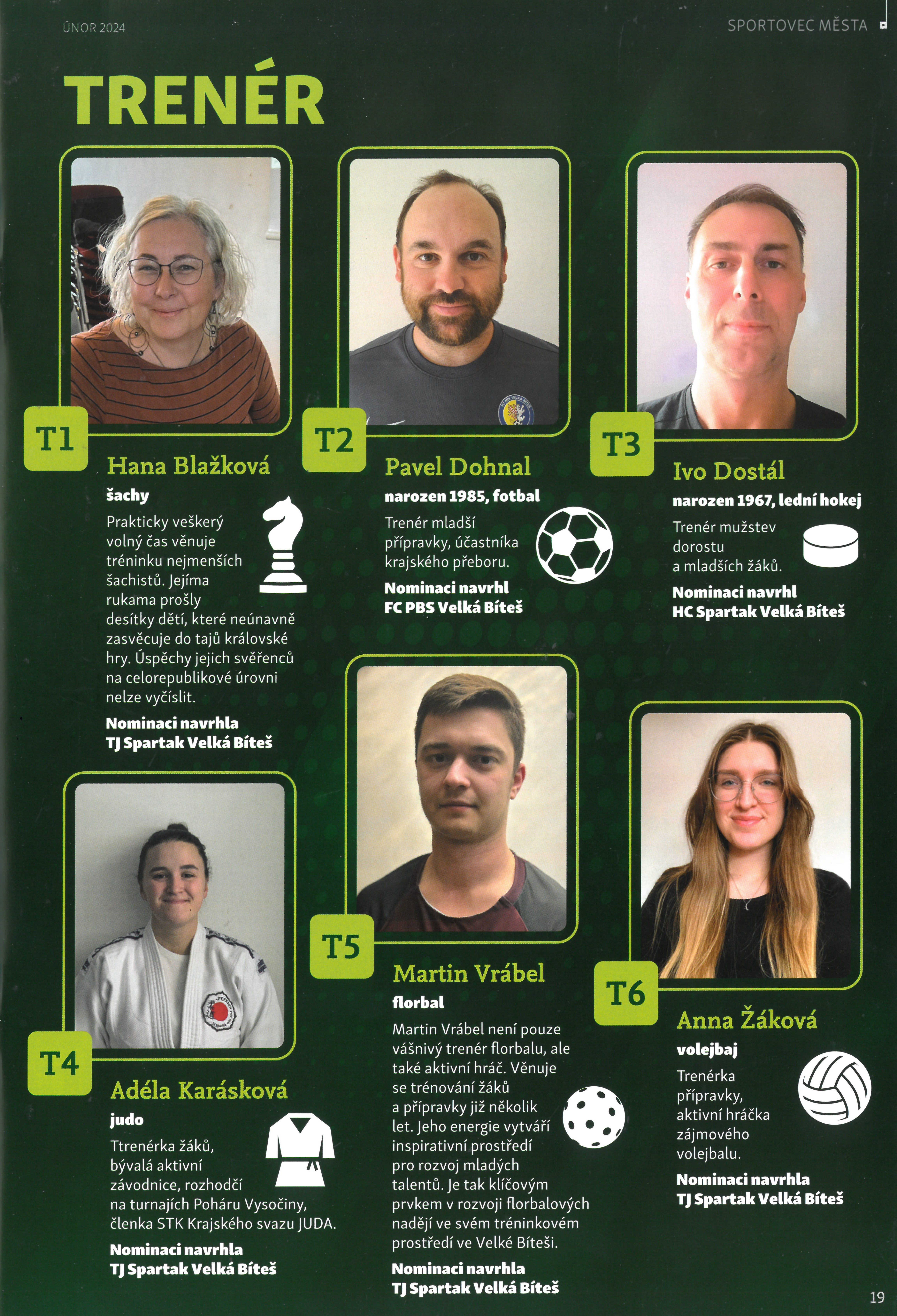 Představujeme vám 17. ročník ankety o nejlepšího sportovce, juniora, mužstvo a trenéra Velké Bíteše SPORTOVEC MĚSTA 2023.