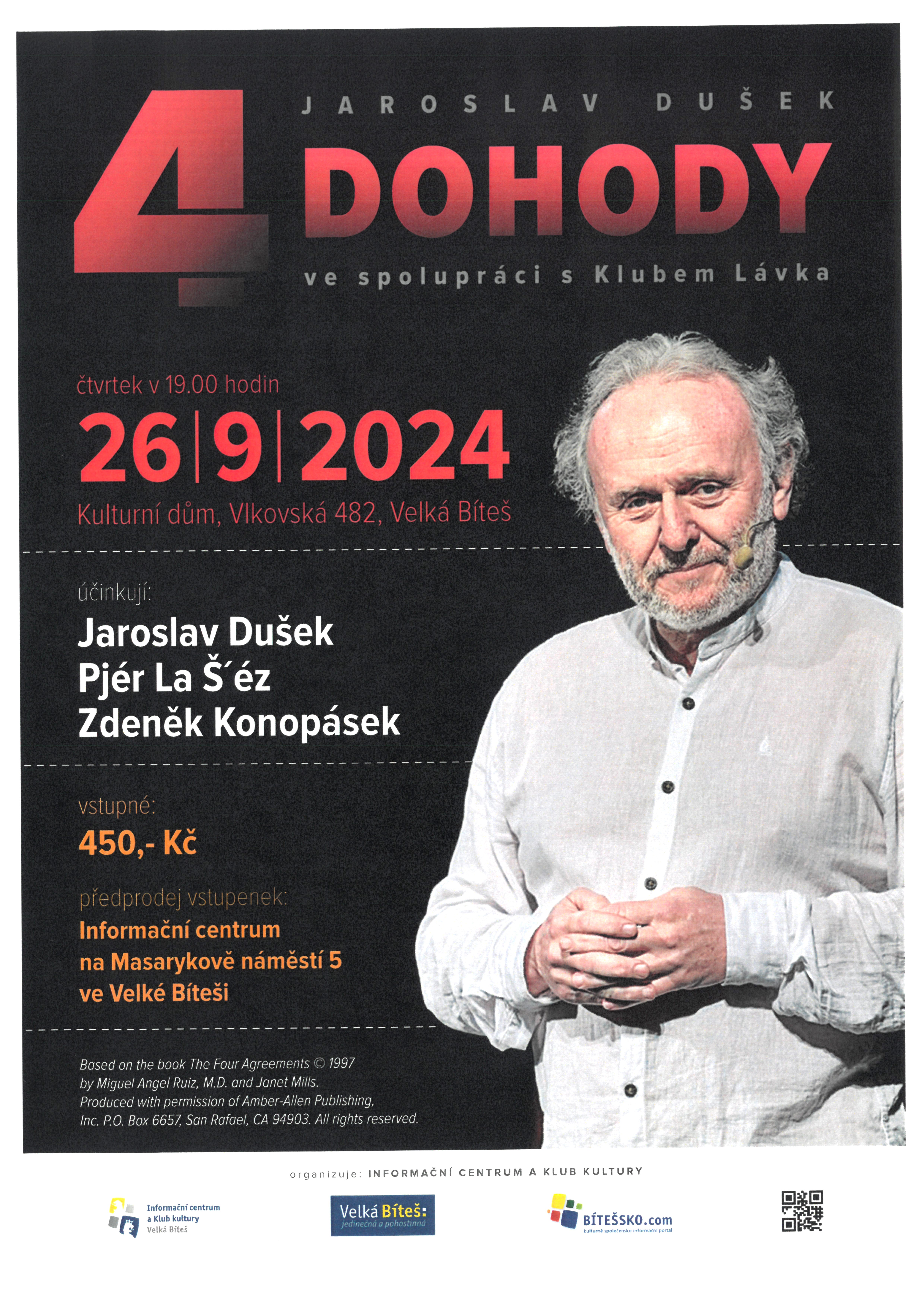 které se uskuteční ve čtvrtek 26. září 2024 od 19 hod v Kulturním domě ve Velké Bíteši.