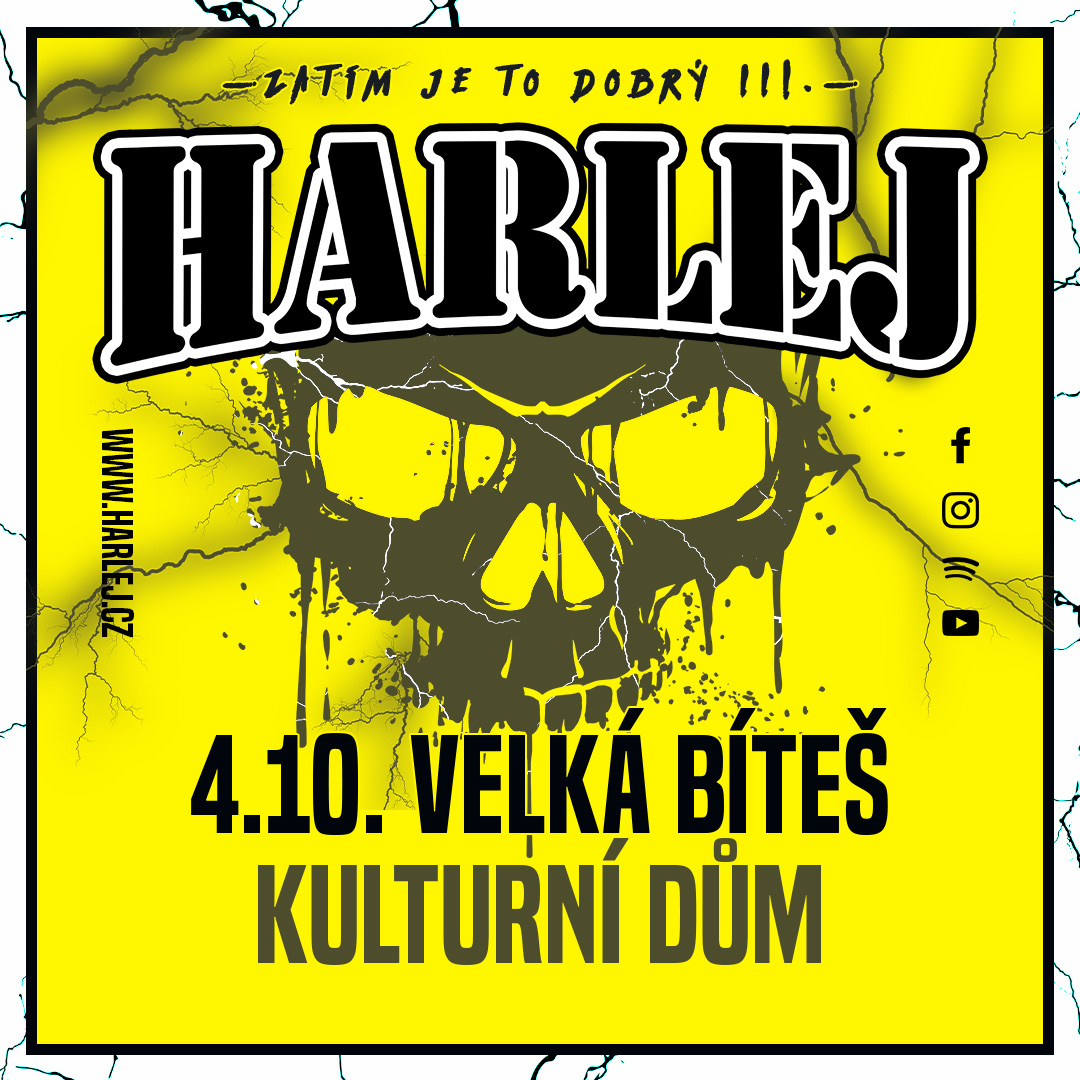 Česká rocková skupina HARLEJ bude v rámci svého turné Zatím je to dobrý koncertovat ve Velké Bíteši.