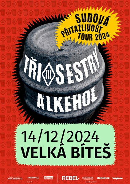 TŘI SESTRY A ALKEHOL 19.9.2024 14.12.2024 se koná koncert skupiny Tři sestry a Alkehol. Předprodej vstupenek v Informačním centru, Masarykovo náměstí 5.