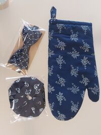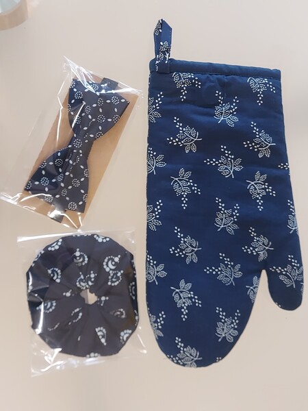 Jedná se o motýlka, gumičku do vlasů a kuchyňskou chňapku. Přijďte se podívat a případně i zakoupit. Výrobky jsou vhodné i jako dárek nebo malá pozornost z našeho města.