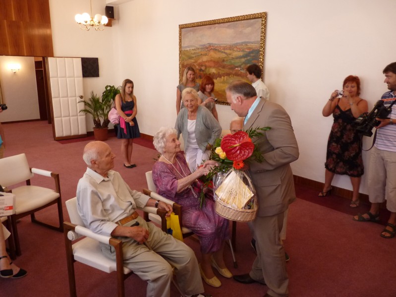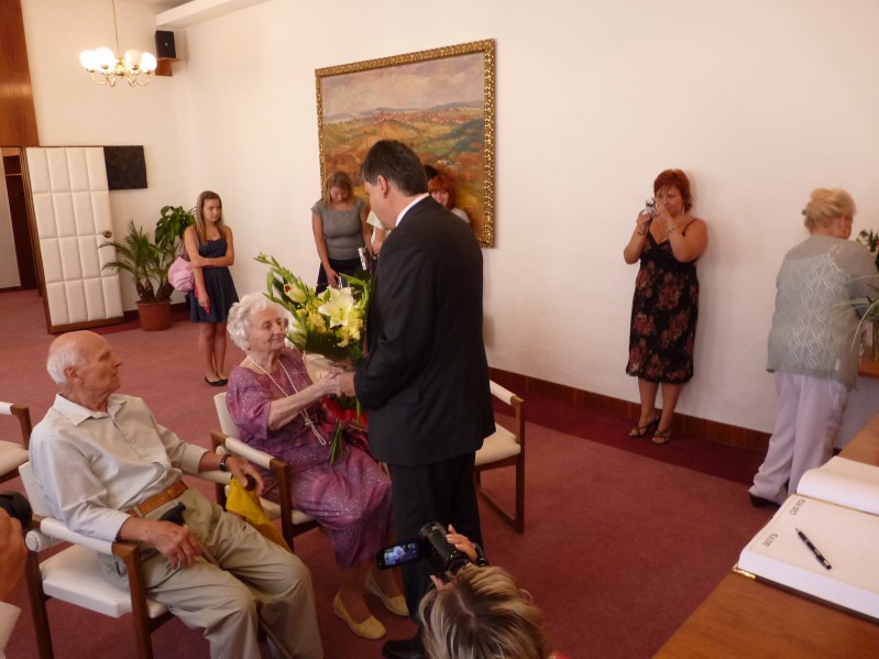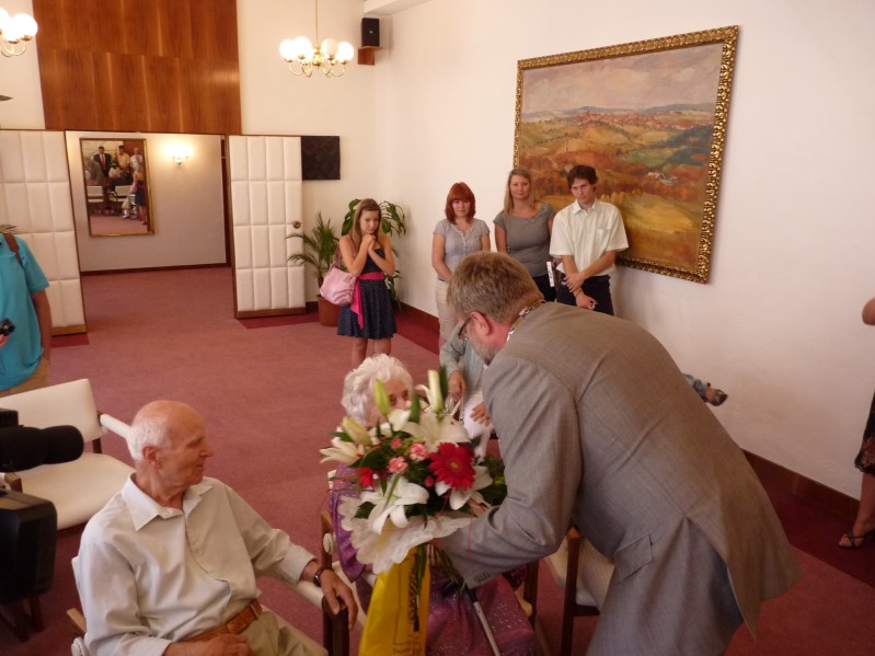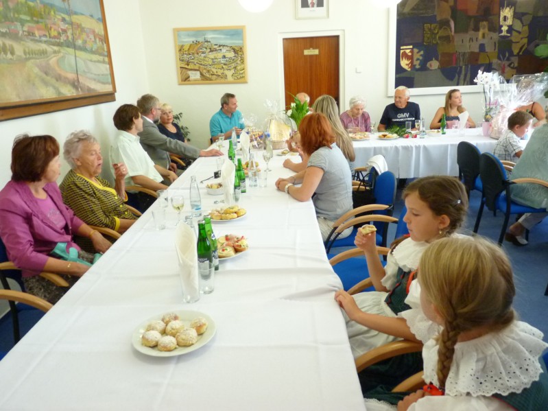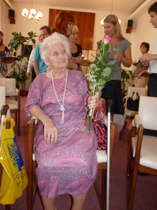 Na oslavu se dostavila nejbližší rodina, popřát jí přišli pan starosta města Ing. Milan Vlček, člen zastupitelstva Velké Bíteše a ředitel polikliniky a domova důchodců MUDr. Svatopluk Horek, radní Velké Bíteše Jiří Rauš, děti z Mateřské školy U Stadionu, dále radní Kraje Vysočina pro oblast sociálních věcí Mgr. et Bc. Petr Krčál, ředitel OSSZ ve Žďáře nad Sázavou Mgr. Miroslav Lučka. Popřát také přišli za Domov důchodců vedoucí Petra Veselá a sociální pracovnice Eva Dosadilová a členky Sboru pro občanské záležitosti.