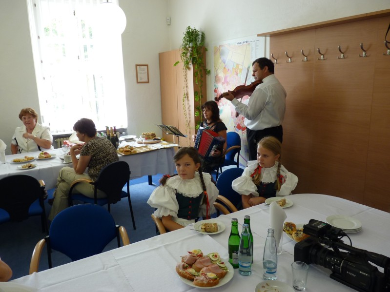 Součástí oslavy bylo i malé posezení s narozeninovým dortem, který upekla snacha oslavenkyně Helena Cahová, připraveno bylo i drobné občerstvení. K poslechu, ale i zpěvu zahrál Otto Hasoň (housle) a Naděžda Burianová (harmonika).