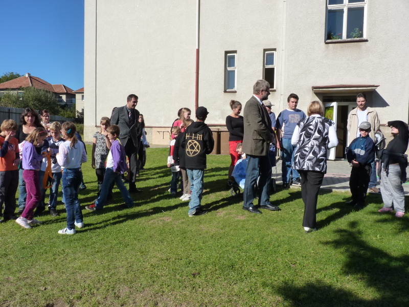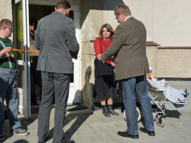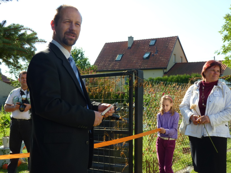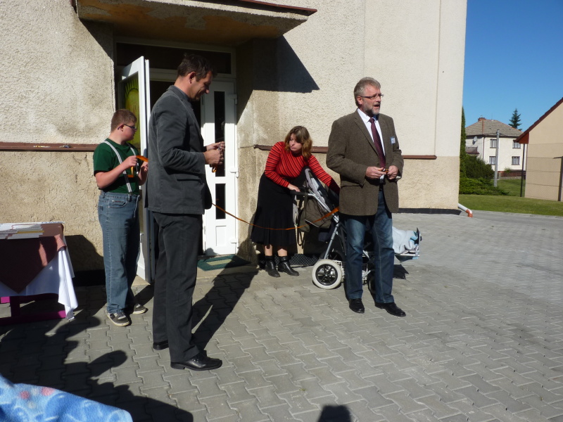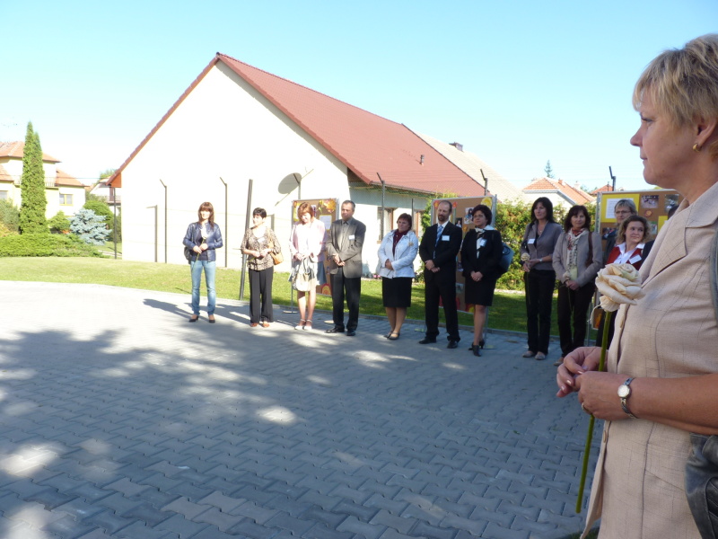 Následně byla plošina symbolickým přestřižením stužky předána žákům školy. Symbolického přestřižení se chopil pan starosta města Ing. Milan Vlček společně s místostarostou Ing. Tomášem Kučerou. Mimo předání plošiny se také otevřela zahradní galerie. Po skončení slavnostního ceremoniálu se hosté společně se žáky školy vydali na prohlídku zahradní galerie, kde byla např. zbudována hmatová stezka, kterou si mimo jiné vyzkoušel i pan starosta Ing. Milan Vlček.