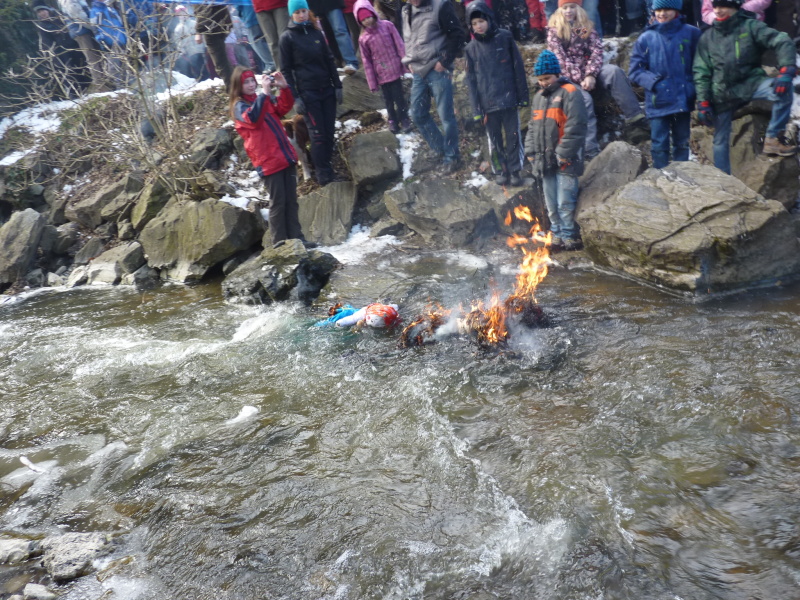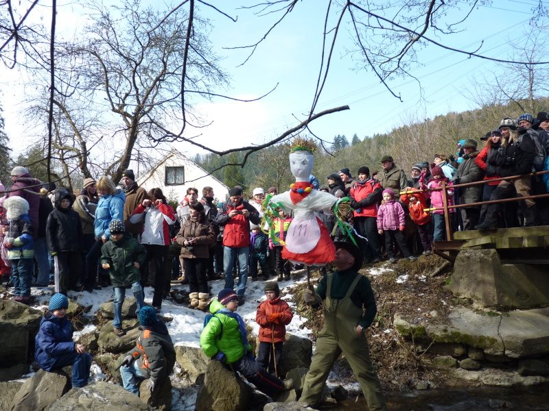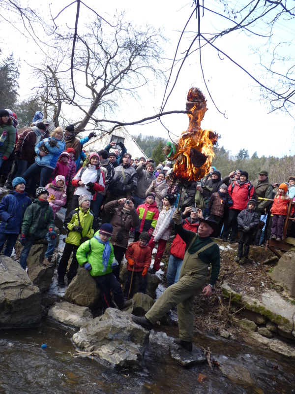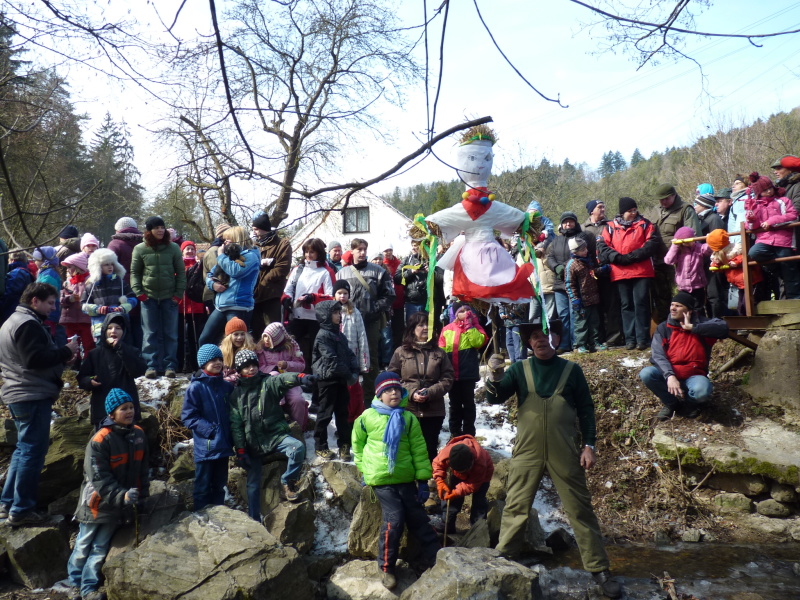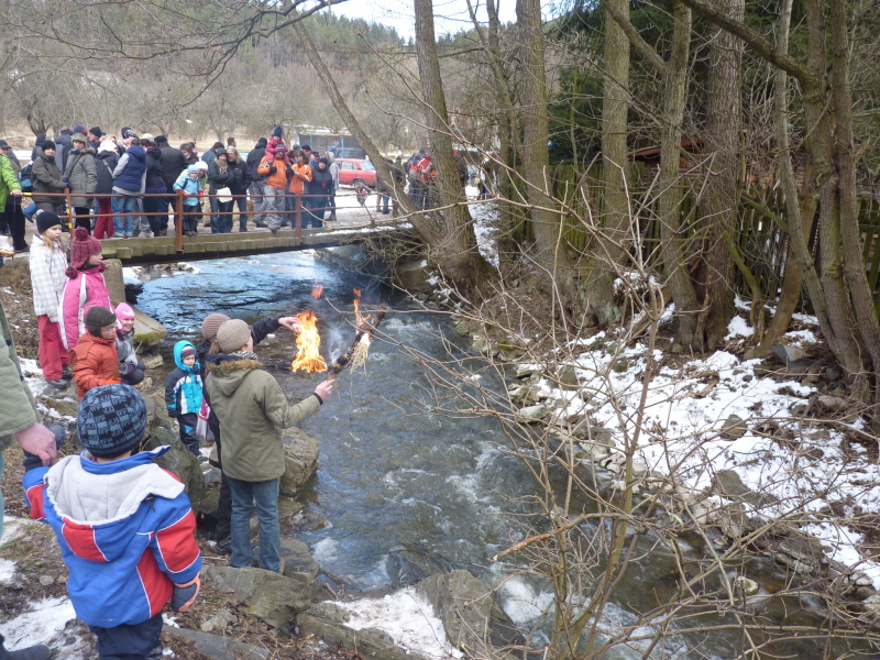 Mrazivé počasí nás doprovodilo na Šmelcovnu, kde se v neděli 24. března 2013 konalo v údolí Bílého potoka tradiční každoroční vítání jara. Úvodem zarecitovaly děti ze Základní školy Domašov několik básniček a následně byla zapálena Moréna - symbol končící zimy, která byla vhozena do potoka.