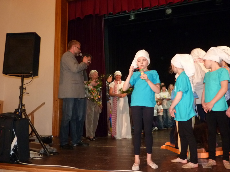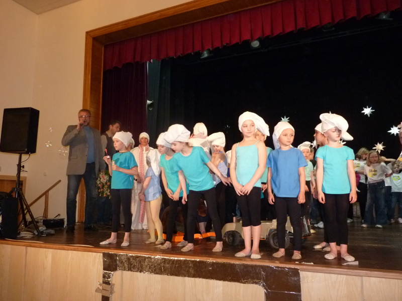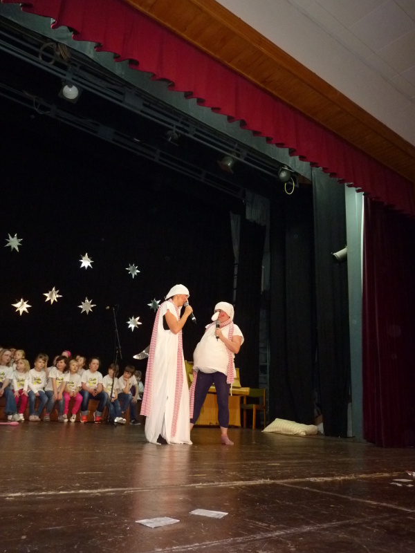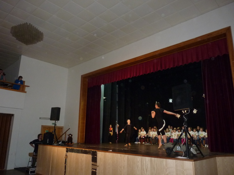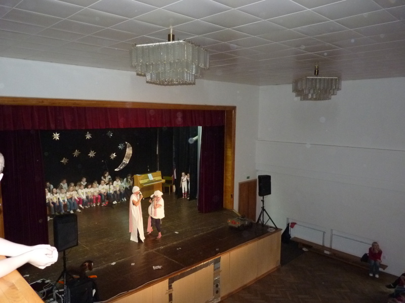 Markéta Zušťáková - moderátorka rozhlasu Vysočina a Míša Křenková - trenérka oddílu Moderní gymnastiky v podání Křemílka a Vochomůrky skvěle a vtipně celý program odmoderovaly. Přítomné odvážné děti si také zvaly na pódium, které pak za splnění malého úkolu dostaly odměnu.