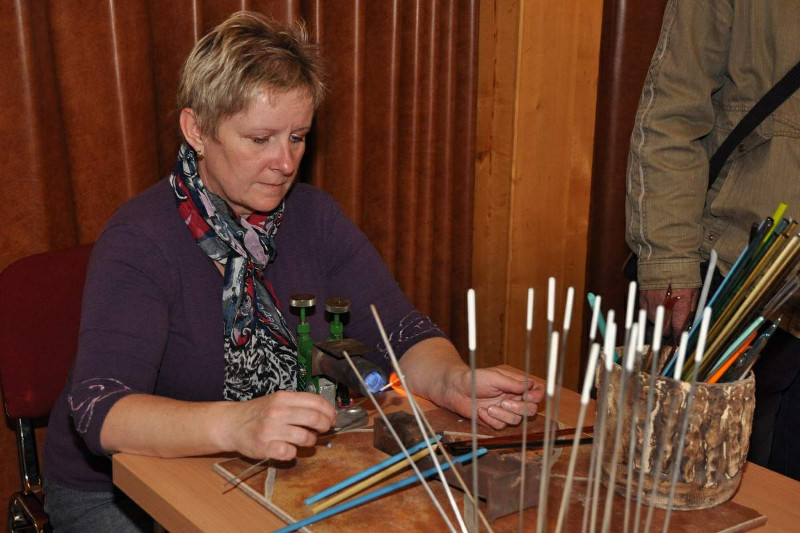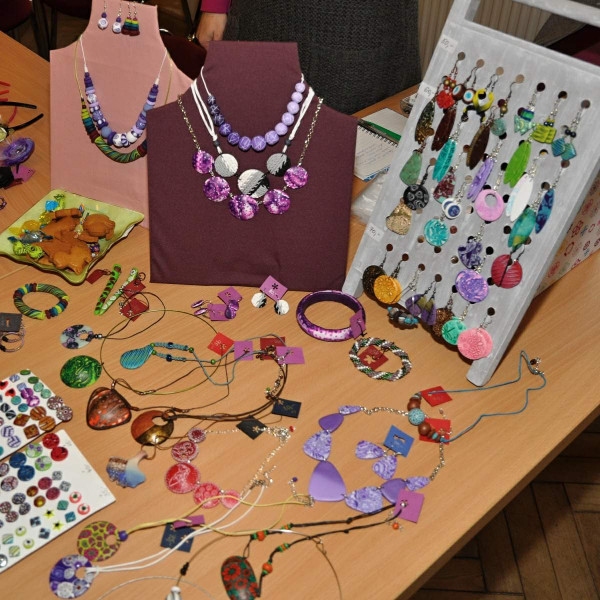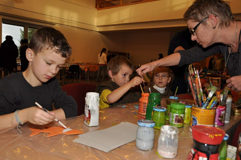 Dále si mohli návštěvníci vyrobit ozdobu na vánoční stromek z filcu, korálků – hvězdičku či andílka (ti, kteří nevěřili, že to svedou, si mohli již hotové hvězdičky a andílky koupit), vyzkoušet si tvoření s fimo hmotou (a zakoupit již hotové krásné šperky z této hmoty) nebo z pedigu (jak z proutí, tak i z novinového papíru). Snad všechny děti, které na vyrábění dorazily, si vymalovaly motýlka, rybičku nebo ptáčka z překližky. Velký zájem byl i o enkaustiku – malířskou techniku známou již od starověku – malbu horkým voskem. Bylo možné si vytvořit malý obrázek a použít jej jako vánoční přání. A nebo někomu udělat radost již hotovým obrazem. Vánoční přání se dala tvořit i z papírů za pomoci různých šablon. V další „dílničce" jste si mohli pomocí speciálních barev ozdobit talířek nebo hrníček, nebo koupit již ozdobené skleničky, hrníčky, talířky a další.