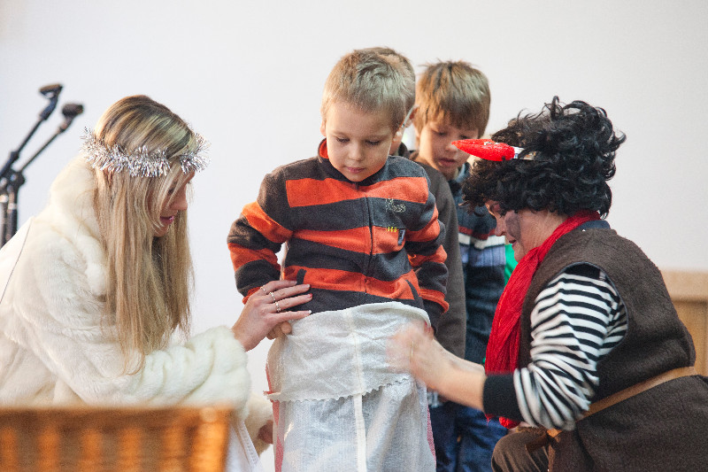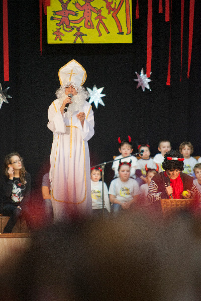 Mikuláš si nakonec také přizval některé děti k sobě na pódium. Po malé soutěži např. skákání v pytli nebo hod míčkem do koše dostaly malou odměnu.