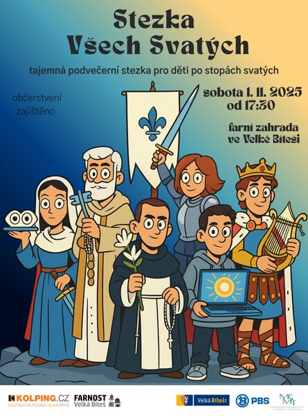 Děti se vydají po malých skupinkách setmělou zahradou a budou potkávat svaté, kteří jim poví něco o sobě a dají malý úkol. Přijďte se seznámit s osobnostmi, které pomáhaly spoluutvářet naši historii a kulturu napříč staletími – od významného židovského krále Davida, přes svatého Jakuba, k jehož hrobu putují ročně statisíce poutníků, až po nedávno svatořečeného „božího influencera" Carla Acutise. Akce je otevřená všem, hlavně dětem, a nabízí hravou a vzdělávací podívanou plnou světel a tajemství.
