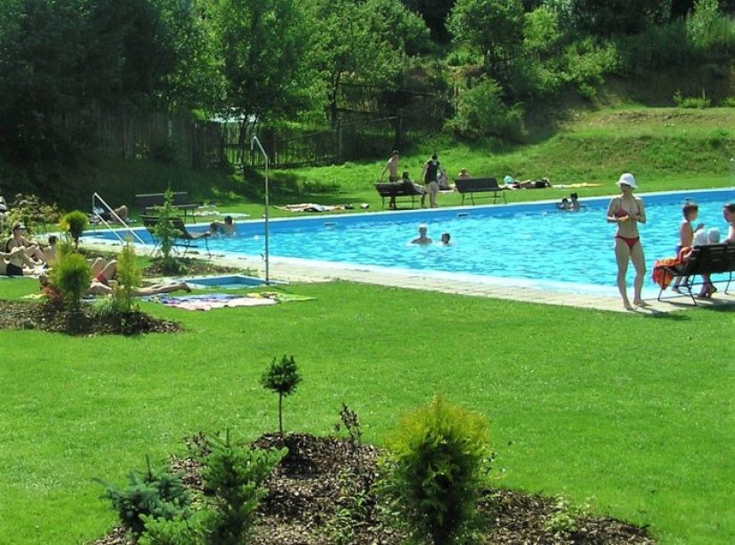 K dispozici je zde bazén o rozměru 22 x 25 m s azurově čistou vodou, jejíž kvalita je udržována čističkou vody při současné kontrole.