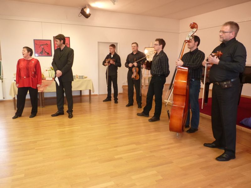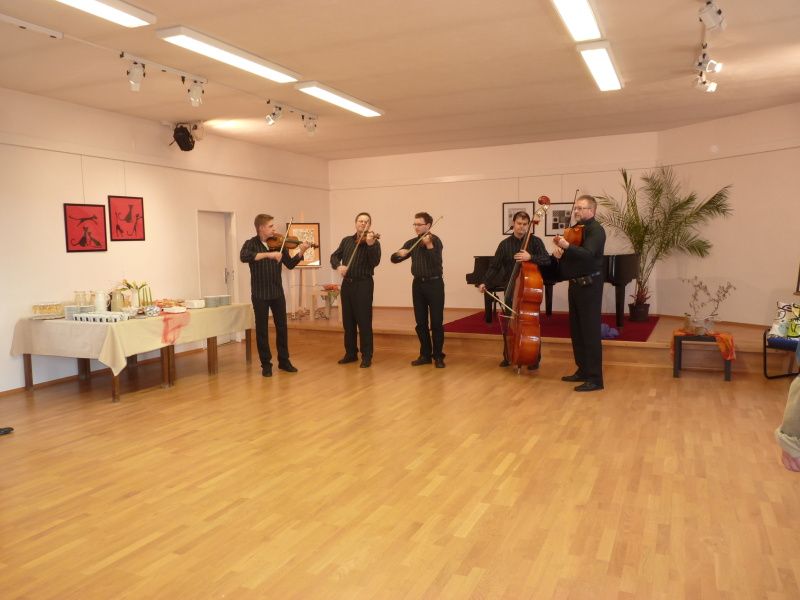 Celou vernisáží nám dělala příjemnou společnost Houslová muzika Bítešan.