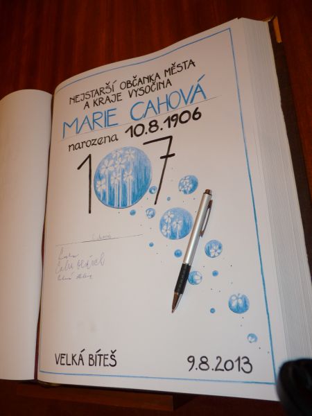 10.8.2013 Nejstarší občanka Velké Bíteše a Kraje Vysočina Marie Cahová oslavila 107 let