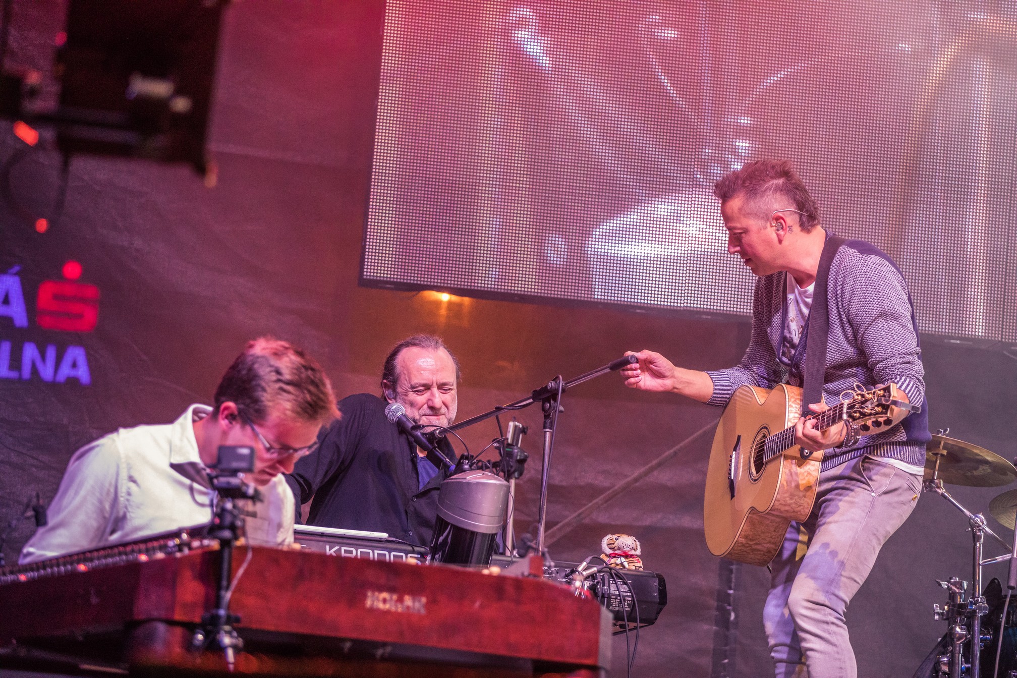 A že se večer bylo na co dívat! Atmosféru vystoupení umocnila tma, takže o to více vynikly jejich barevné kroje (po pravdě řečeno ani nevím, kolik jich v průběhu vystoupení vystřídali), podpořené světelnými efekty a projekcí na LED obrazovku. Diváci měli možnost poslechnout si typické východňárské melodie v podání mladých, temperamentních muzikantů ĽH Dzugasovci a zhlédnout zajímavé choreografie v precizním provedení tanečníků a tanečnic FS Vargovčan. Sobotní večer byl opravdu nabitý. Jen co skončilo vystoupení Vargovčanu na náměstí, přesouvali jsme se do kulturního domu, kde měl proběhnout večer česko – slovenského přátelství, samozřejmě za účasti zástupců obou našich družebních měst a členů našich folklórních souborů. Večera se dále zúčastnili hodový rychtář s rychtářkou, s konšely a konšelkami, pochopitelně podporováni chasou, a dále pak široká veřejnost. O událost byl tak veliký zájem, že se ještě těsně před zahájením musely doplňovat stoly a židle v sálu, a přesto na všechny příchozí místo k sezení nevyšlo.