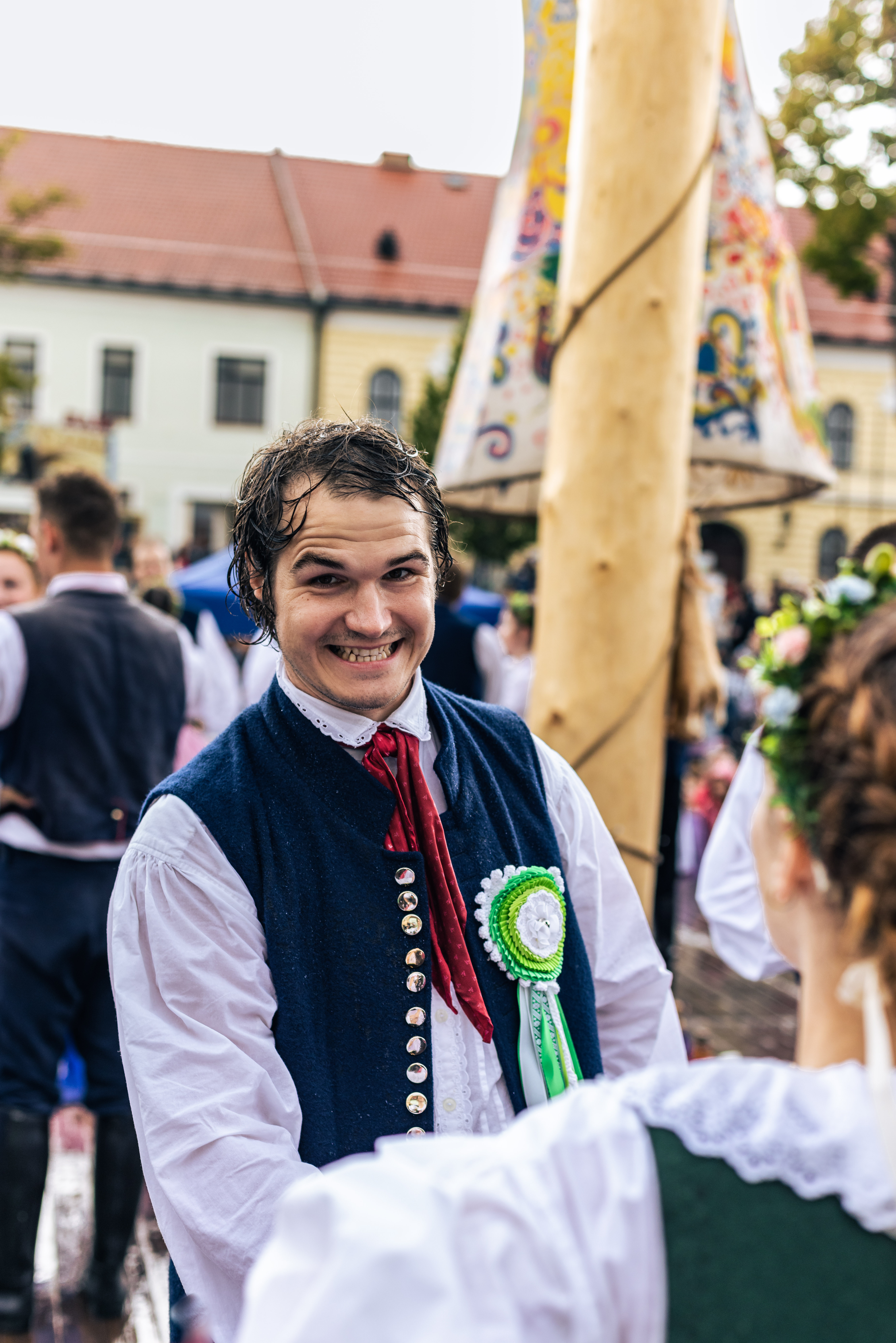Ten se spustil i při hlavním nedělním programu, ale nadšené mládí tančící na pódiu nezastavil. Náměstí rozkvetlo deštníky a chasa s úsměvem odtančila mokrou besedu. Smekáme pomyslný rychtářský klobouk před vytrvalostí tančících i přihlížejících. Voda je přece potřeba.