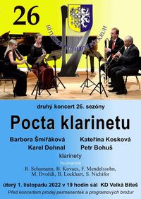 1. listopadu 2022 zavítalo do Velké Bíteše klarinetové kvarteto ve složení Barbora Šmiřáková, Kateřina Kosková, Karel Dohnal a Petr Bohuš, který byl dříve pedagogem všech zbývajících členů kvarteta. Klavírní doprovod skvěle obstaral Lukáš Michel.