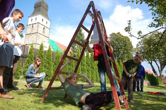 O hodovém sobotním odpoledni ožila i farní zahrada. Celá se rozezvučela mnoha veselými hlasy, ozývalo se povzbuzování, fandění, výskání a smích - skoro sto dětí se utkalo v soutěži "Bíteš hledá borce".
