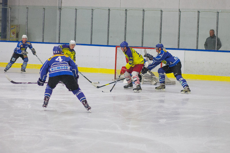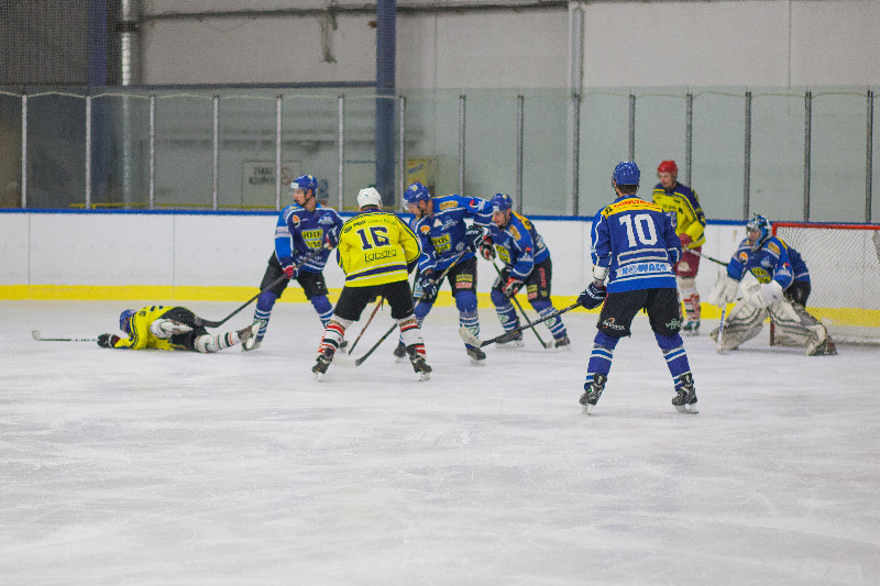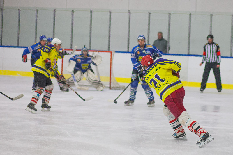 Neporazitelnost na domácím stadionu pokračuje. Hosté z Velkého Meziříčí přijeli k tomuto utkání nabuzeni dobrými výkony a výsledky z minulých zápasů a s podporou svých příznivců pro vítězství. Domácí ale byli proti a tak utkání se hrálo od začátku ve velkém tempu s množstvím šancí. Domácí se od třetí minuty dostávají do vedení a dále mají vyložené šance, které se jim však nedaří realizovat. Oba brankáři chytají skvěle. Co se nedaří proměnit z vyložených šancí přichází jinak. Teč před brankařem a trefení puku ve vzduchu a rázem jdou domácí do třígólového vedení, ale zaslouženě. V této třetině byli domácí hráči hostům hokejovými lektory.