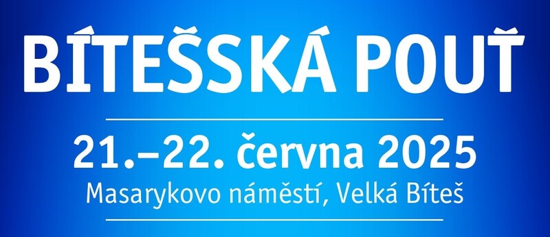 Zveme Vás na BÍTEŠSKOU POUŤ, která se bude konat od 21. - 22. června 2025 na Masarykově náměstí ve Velké Bíteši.