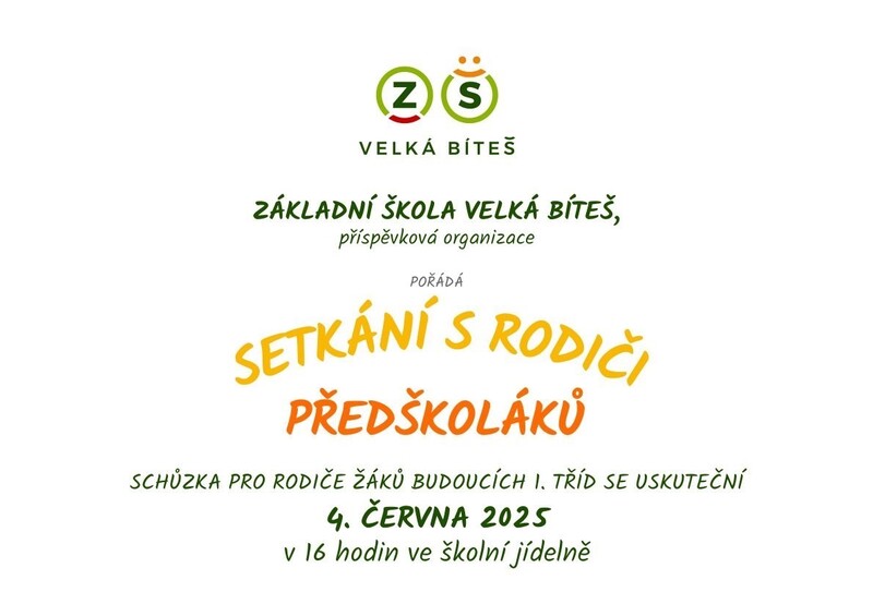4.6.2025 v 16.00 hodin se koná schůzka pro rodiče žáků budoucích 1. tříd ve školní jídelně.