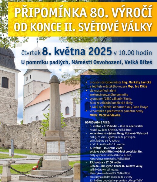 Ve čtvrtek 8.5.2025 v 10.00 hodin se koná připomínka 80. výročí od konce II. světové války