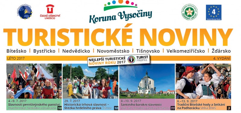 Už pátým rokem Vysočina Tourism připravuje turistické noviny Kraje Vysočina. Pokud se chcete inspirovat na některý z letních výletů prolistujte si on-line verzi těchto novin. Určitě zde najdete spoustu tipů na zajímavé výlety.