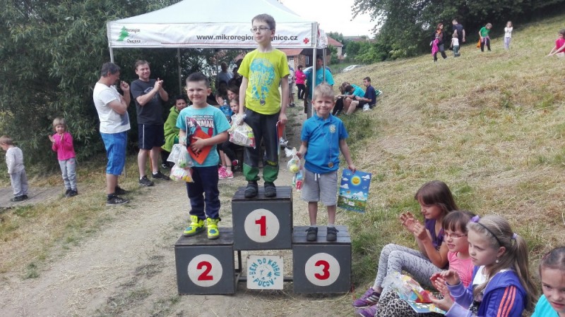 I přes předpověď počasí nám počasí, až na pár spadených kapek přálo a předpovězené dešťové přeháňky byly až v odpoledních hodinách. Některé děti, ale přece jen zmokly, ale ne díky dešťovým kapkám, ale díky malému překvapení na závěr v podobě vodního děla umístěném na výsuvné plošině, pod které děti utíkaly ochladit se v horkém dni.