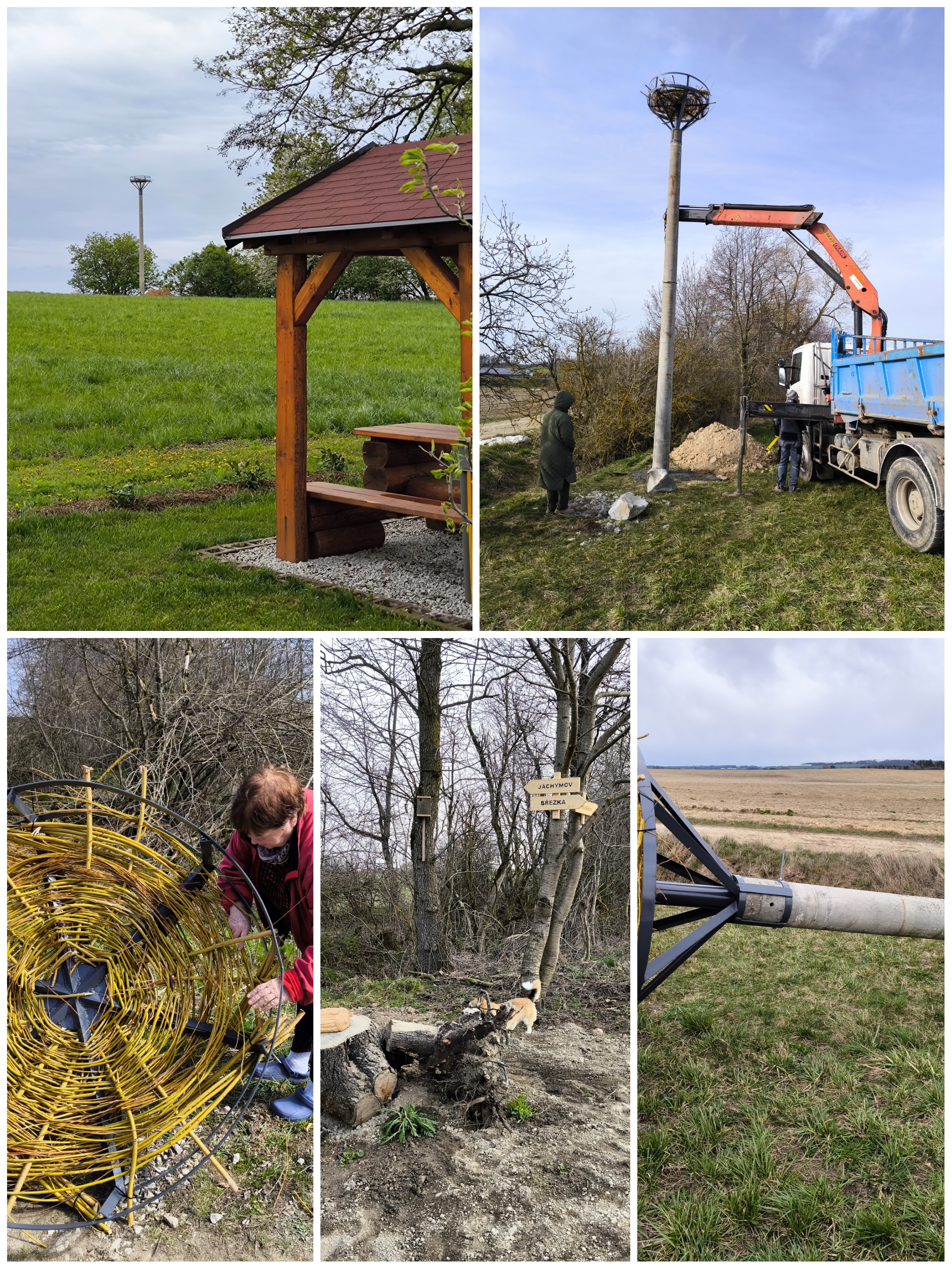 Po úvodním shánění informací u ochránců přírody a ornitologů jsme se rozhodli jako jednu ze společných akcí vybudovat základ pro budoucí čapí útočiště. Vyřazený sloup elektrického vedení, šikovnost místních a vůle dotáhnout celý projekt do zdárného konce byla předmětem společné akce, na jejímž konci se podařilo sloup i s konstrukcí včetně proutěného výpletu vztyčit a ukotvit.