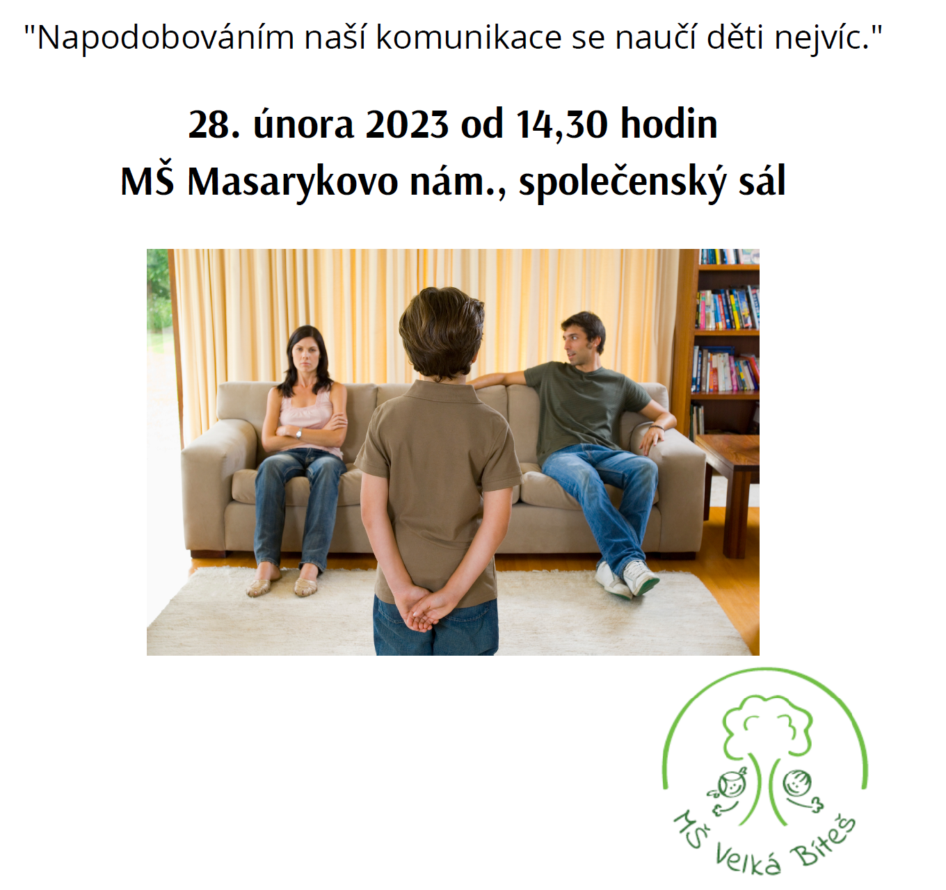 MŠ Masarykovo náměstí Velká Bíteš srdečně zve 28. 2. 2023 od 14.30 na besedu na téma