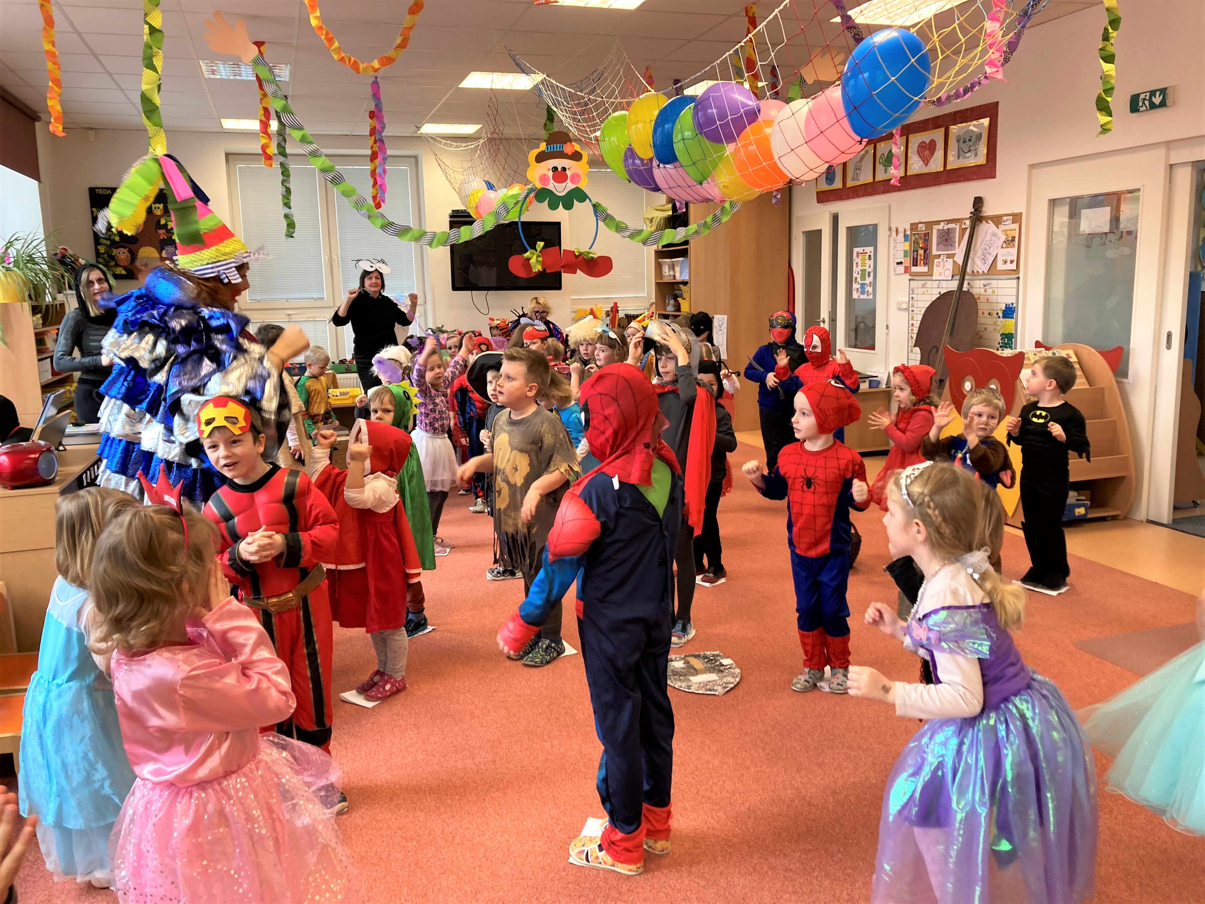 Dne 15. 2. 2023 uspořádala Mateřská škola na Masarykově náměstí pro děti ze třídy Broučků, Koťat a Motýlků Masopustní maškarní karneval.