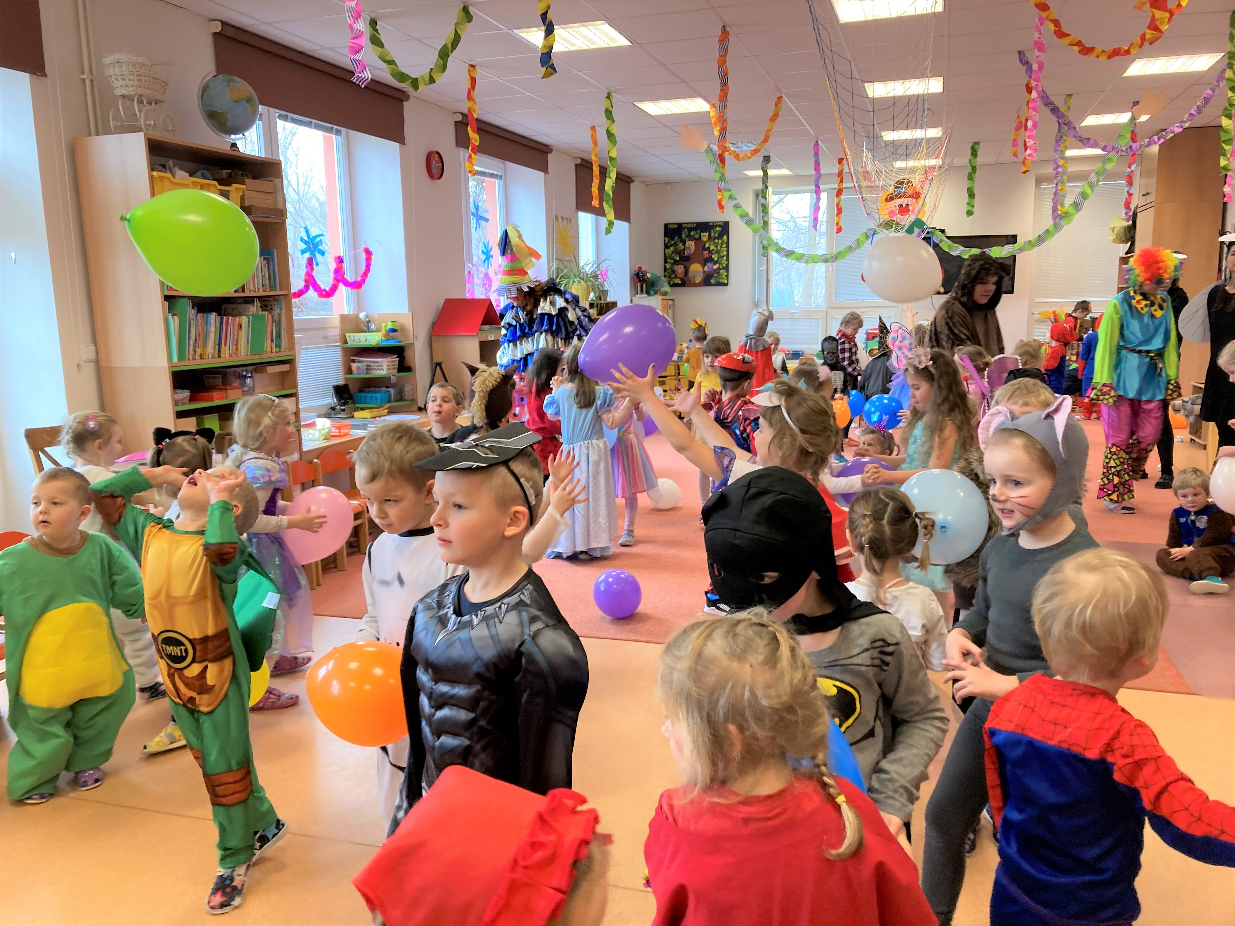 Čtvrtek 16. února byl v naší školce ve znamení oslav masopustu. Děti si přinesly veselé a nápadité kostýmy a ani paní učitelky nezůstaly pozadu. Přípravy na velkou událost probíhaly již v předchozích dnech. Společnými silami si každá třída vytvořila barevnou výzdobu, děti pomáhaly skládat a lepit papírové řetězy, nafukovaly balónky a připravovaly těsto na sladké koblížky.