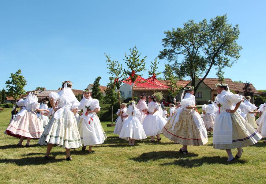 Pojďme se společně ohlédnout za teplou letnicovou nedělí 5. června 2022. Na tento termín si dívky připravily písně, tance, májku, ratolesti, které si nechaly posvětit v kostele sv. Jana Křtitele ve Velké Bíteši v pátek 3. června na mši svaté v 18 hodin. Oblékly se do slavnostních krojů, král a královna bělostných.