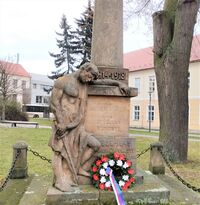 Na Náměstí Osvobození u kostela vytvořil František Machatý v roce 1926 pomník padlých.