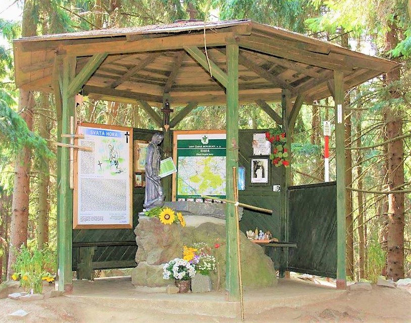 Na vrcholu Svaté hory je altán s kamenným oltářem a plastikou. Jedná se o velice příjemně působící místo, které podle zápisů v pamětní knize navštíví ročně velké množství poutníků. Vrchol býval hustě zalesněn, v důsledku kůrovcové kalamity však většina rozsáhlého polesí zmizela.