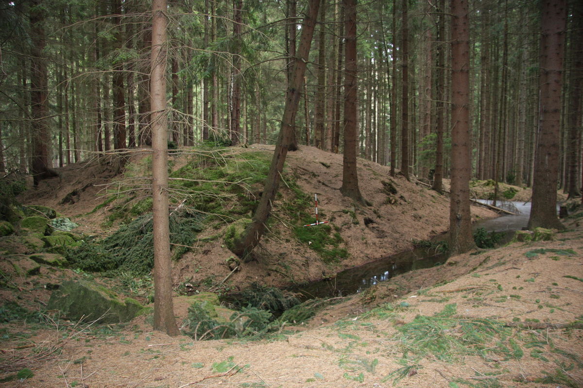 Středověké tvrziště poblíž zaniklé vsi Rohy je unikátním dokladem tvrziště s dodnes funkčním vodním příkopem.