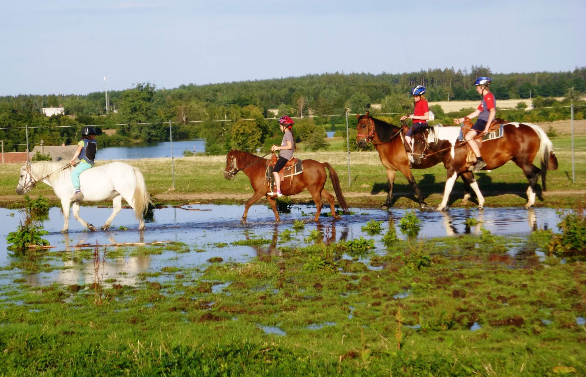 Ranč nabízí možnost jízdy na koni a zejména pro děti jízdy na hodných ponících.