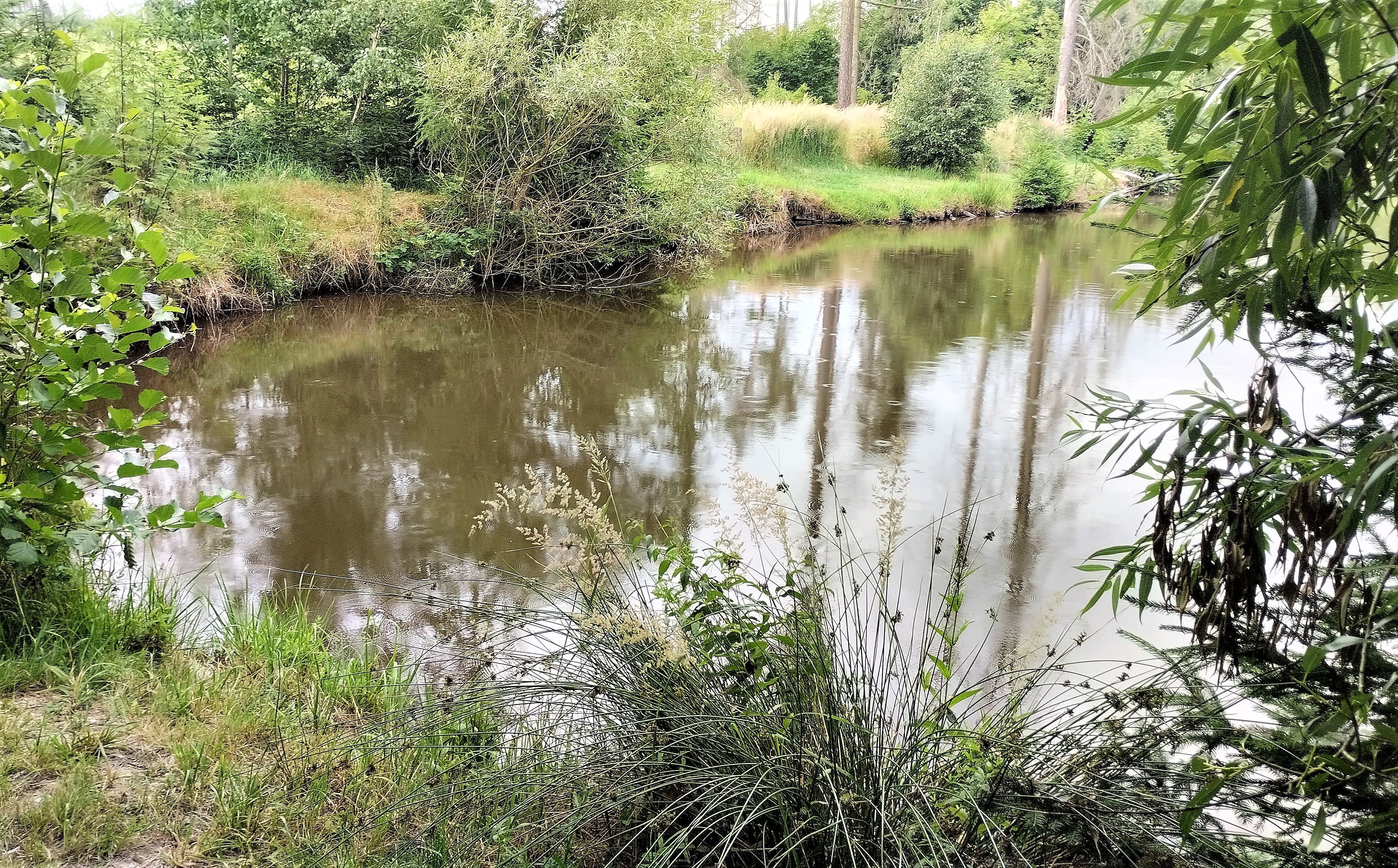 Okolí je hezky upravené, je tu dřevěná lávka, takže rybník se dá celý obejít.