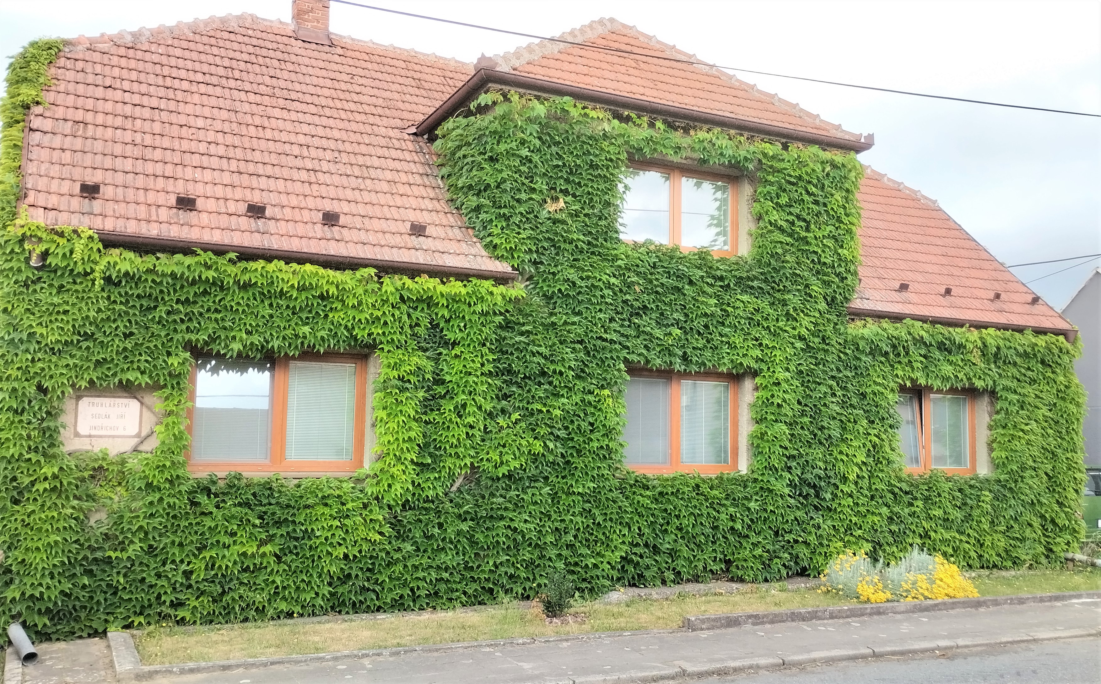 Proti ní přes silnici můžete dětem ukázat zajímavý „zelený dům" – je celý porostlý břečťanem.