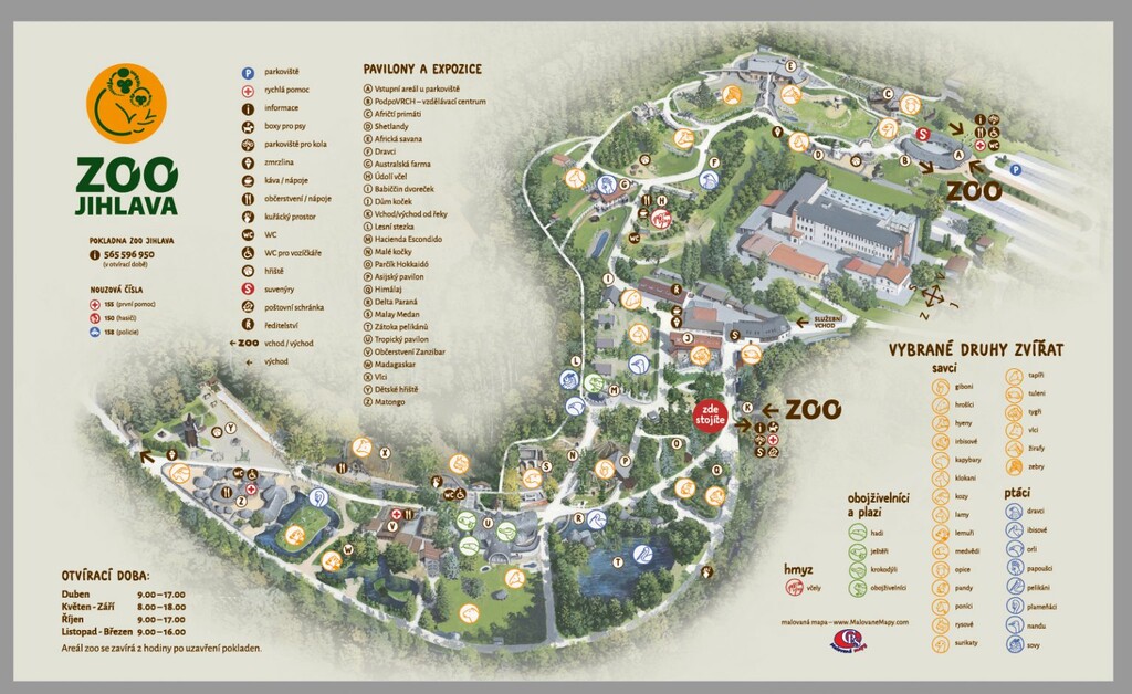 Uznávaná zoologická zahrada v krajském městě Jihlavě leží v údolí říčky Jihlávky. Přestože je areál zoo velmi blízko centra města, nabízí zónu odpočinku s vodními plochami, parčíky, pavilony a výběhy pro zvířata.